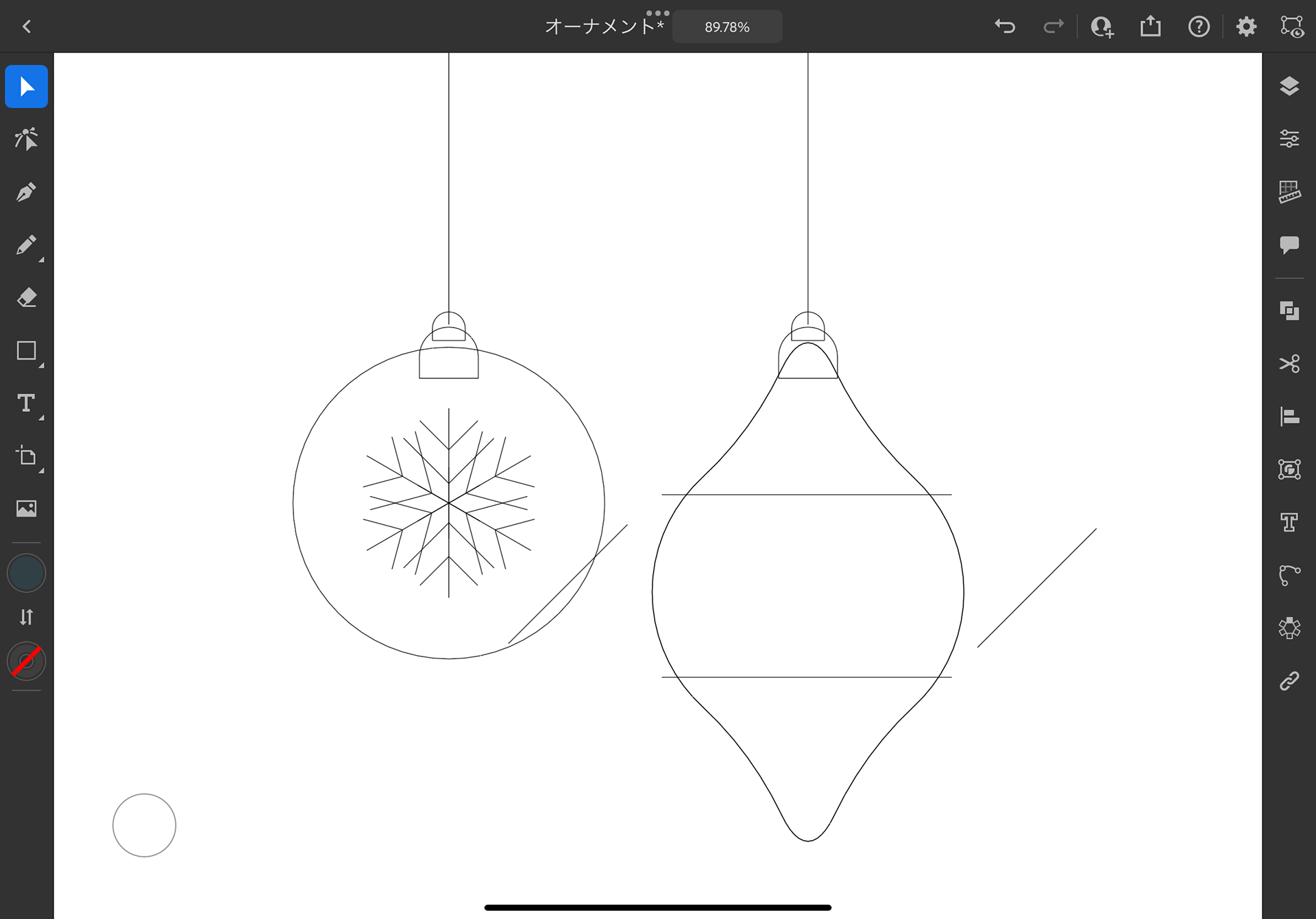 ということで、Illustrator iPad版でペンツールを使わずに丸と四角と直線を使ってクリスマスオーナメントを作ります!