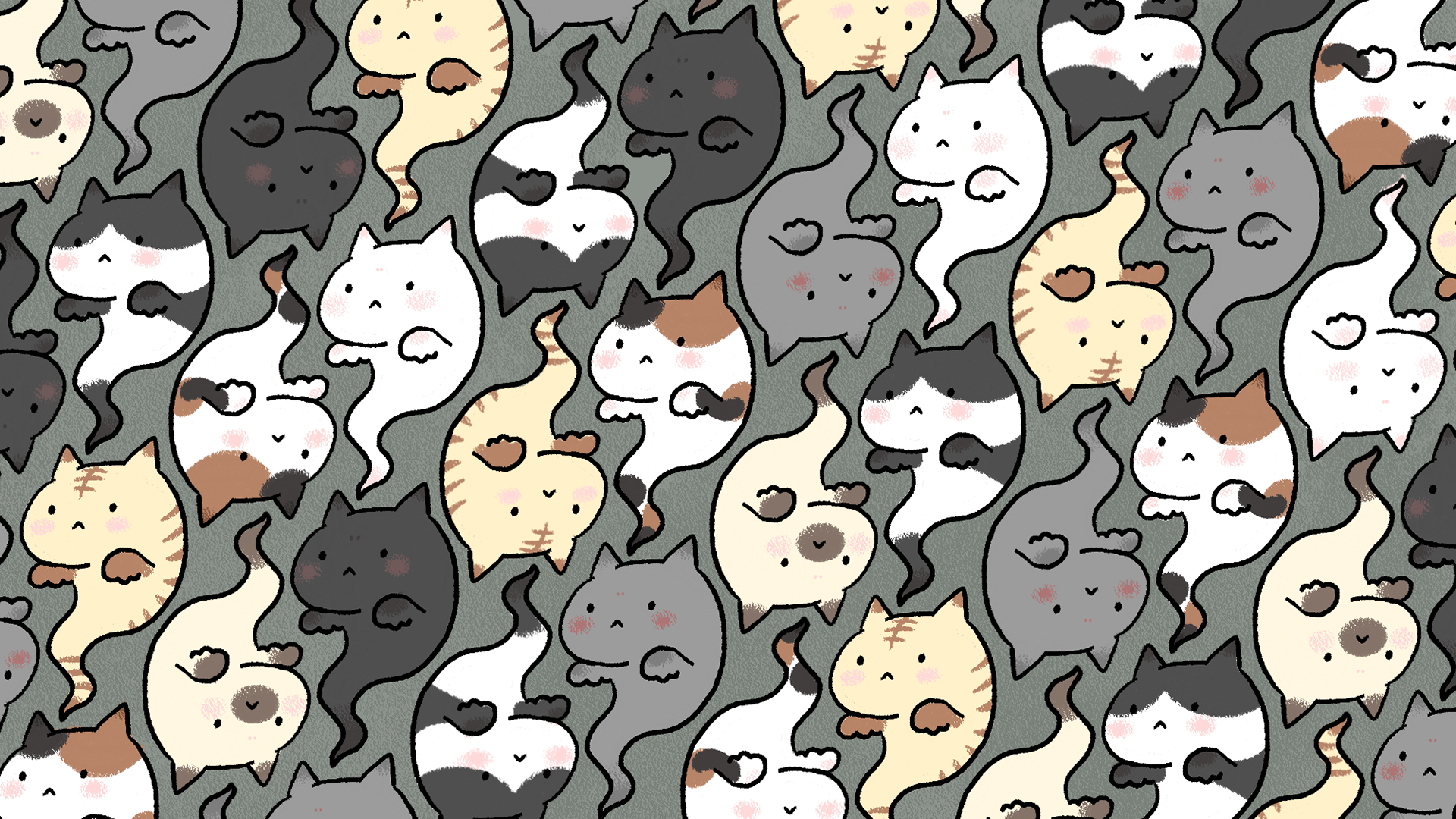 ねこお化けのパターン。 Cat ghost pattern drawn by Adobe Fresco.